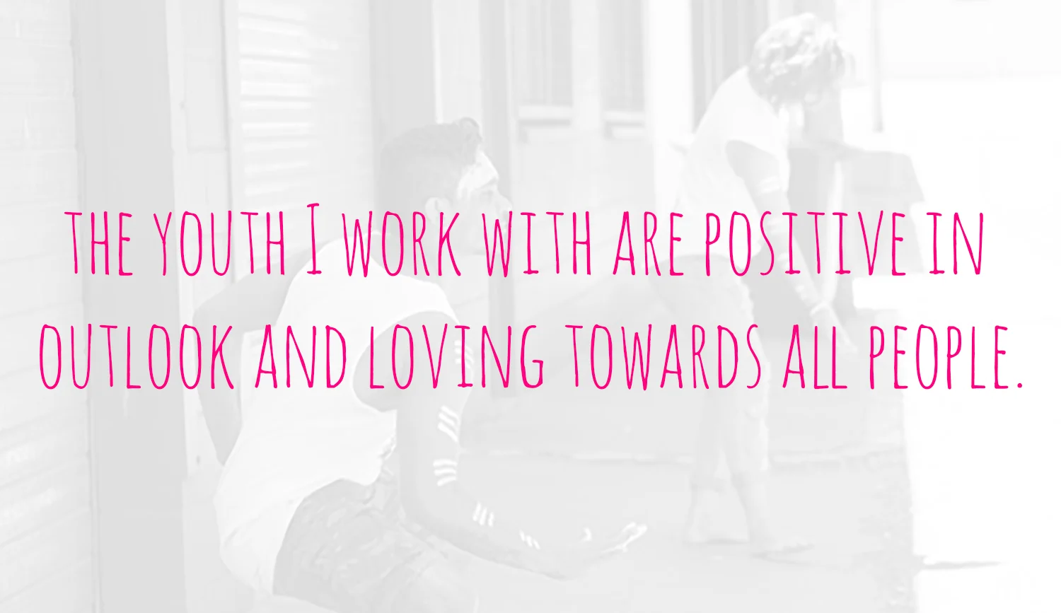 I work with our young people; the future of our mob. They imitate everything we do and say. This imitation quickly becomes the character of their being. For the most part, the youth I work with are positive in outlook and loving towards all people. And as their leaders, role-models or support workers, we are responsible for fostering this positivity and compassion, not destroying it.